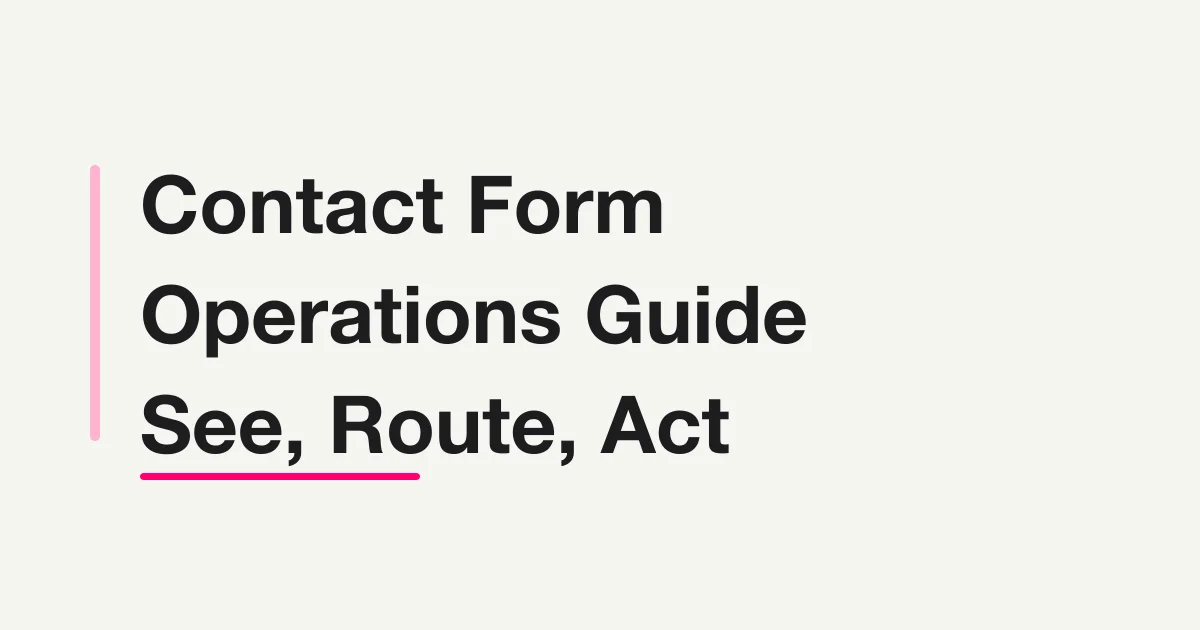 This article introduces the See-Route-Act framework and shows how to use it to bring structure to contact form operations. The goal is simple: automate what should be automated, and handle manually what needs human judgment.