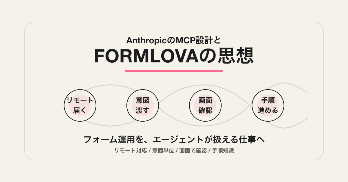 だからこの記事は、単にMCPの一般論として読むだけではもったいないと思いました。FORMLOVAをなぜこの形で作っているのかを説明するうえで、かなり重要な補助線になります。