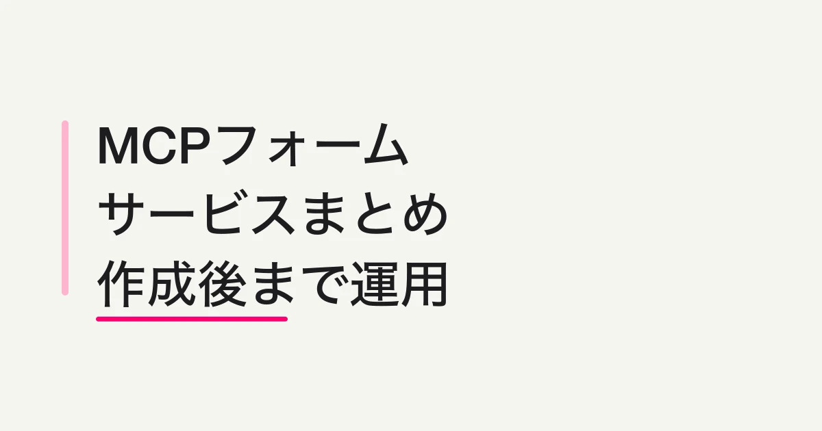 「MCP フォーム」「MCP対応フォームサービス」と検索する人は、AIクライアントから実際のサービスを操作したい、または作成後の運用まで含めて比較したい可能性が高いです。