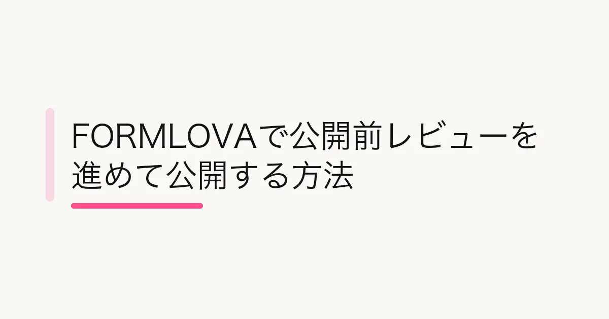 私は、この2本立てがFORMLOVAの公開フローの強さだと思っています。