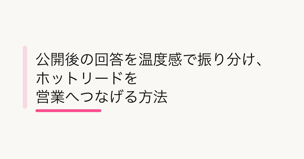 これでかなり実務的になります。高温度の回答かどうかは、単に デモ希望 と答えたかだけでは足りません。誰なのか、どんな課題を持っているのか、いつ動きたいのかまで見えて、初めて営業チームが動けます。